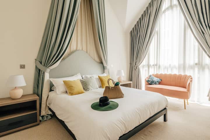جناح رئيسي فاخر مع سقف كاتدرائي مذهل وحمام داخلي على طراز السبا