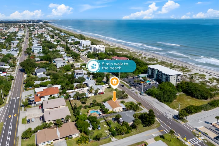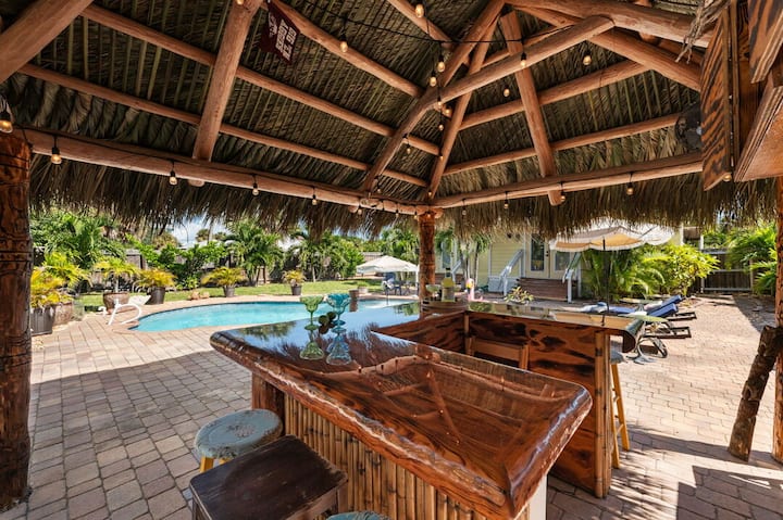 جوهرة شاطئ كاكاو مع حمام سباحة وبار تيكي!
