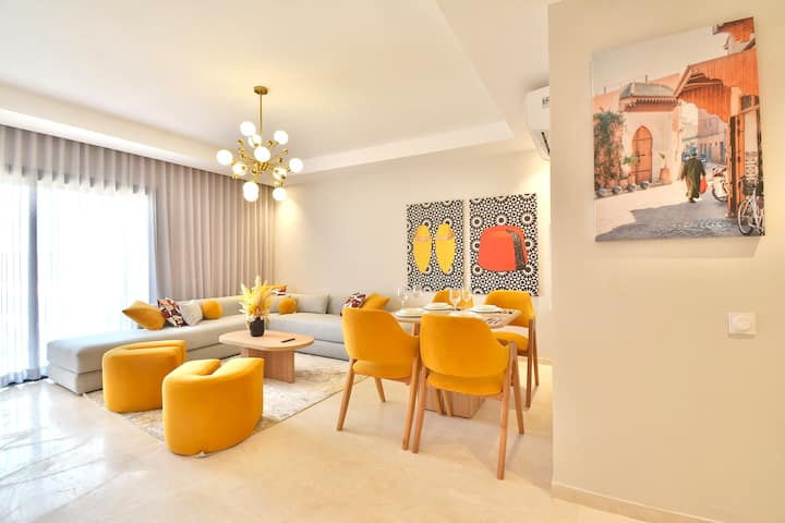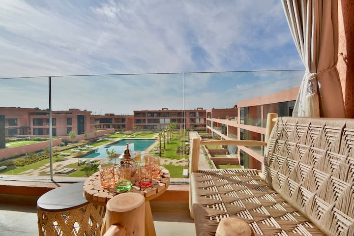 مراكش لوكشوري 2BR إطلالة على حمام السباحة/تراس/عمل عن بعد