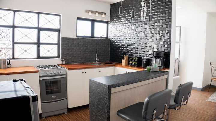 شقة حديثة مع مكيف هواء/2 شخص/وسط أواكساكا/مطبخ كبير