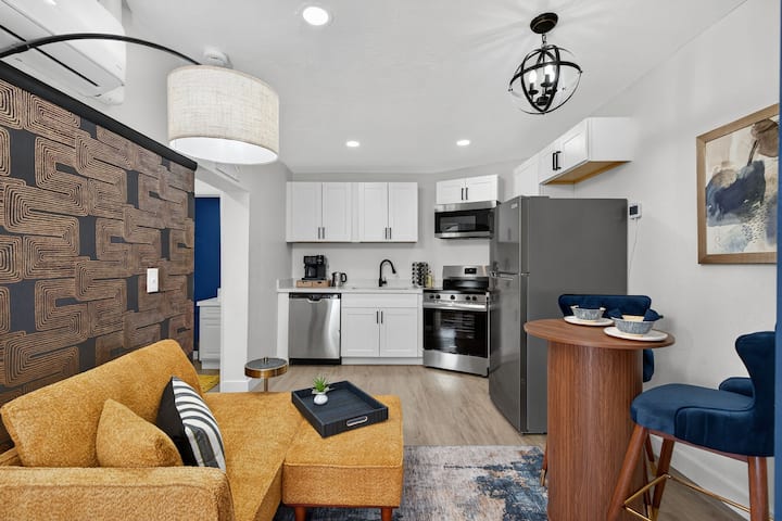 مصمم 1BR بالقرب من وسط المدينة مع حفرة نار وألعاب