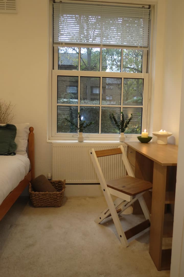 غرفة مريحة بسرير بحجم متوسط في وسط لندن