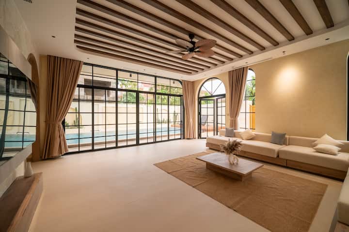(V14) فيلا 5 غرف نوم| حمام سباحة | شواء | غسيل ملابس مجاني | بالقرب من الشاطئ