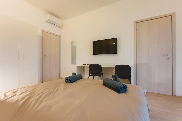غرفة عصرية 2 مع تراس بالقرب من المحطة