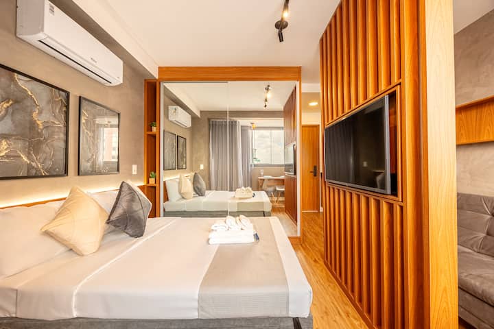 🏡 استوديو مريح وعملي في ساو باولو! مثالي للأزواج أو الأصدقاء أو العائلات الصغيرة، ومصمم لتوفير الطابع العملي والراحة والإقامة الخالية من الهموم.