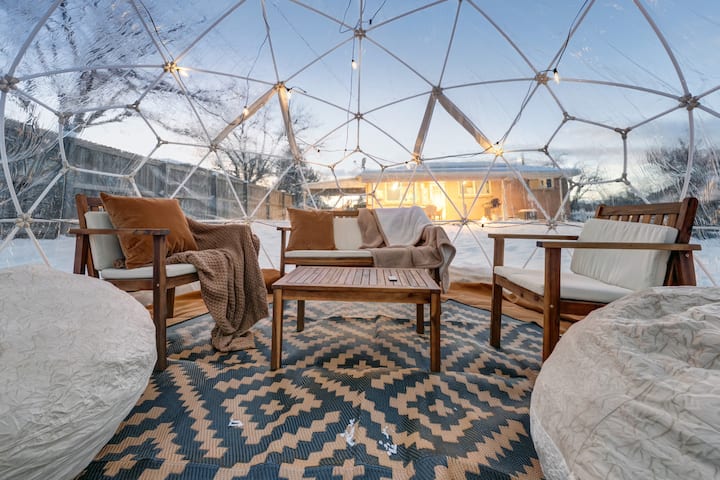حوض استحمام ساخن + قبة فقاعية • أسرّة كينج • واحة نباتية