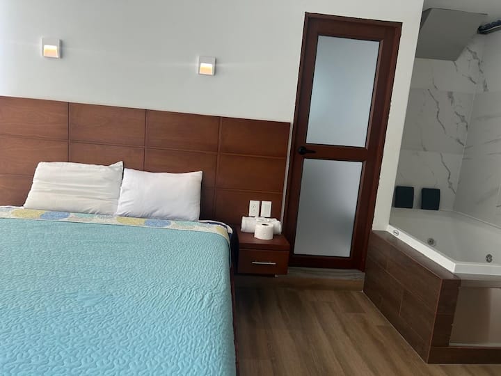غرفة خاصة مع جاكوزي في الفندق.