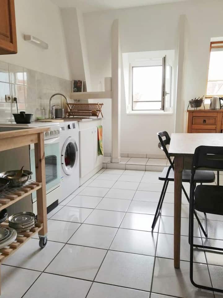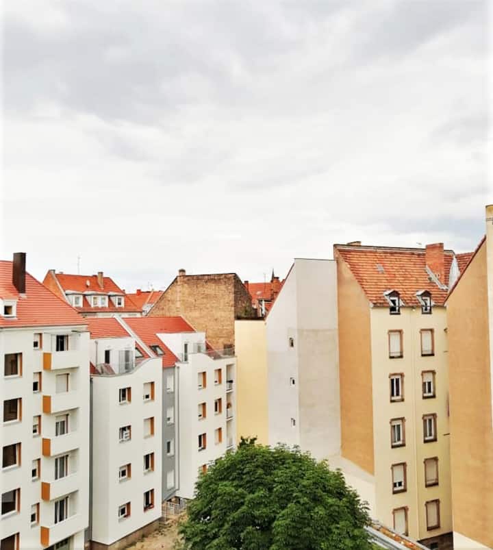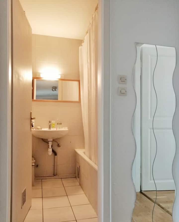 غرفة جميلة مضيئة؛ قريبة من محطة القطار وفرنسا الصغيرة