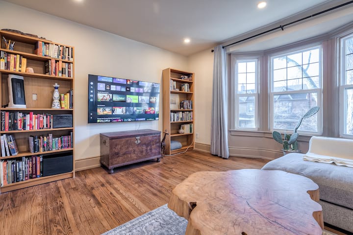 توفر هذه الوحدة المكونة من غرفة نوم واحدة في الطابق العلوي إقامة مريحة وعملية داخل منزل سكني. تشمل المساحة منطقة معيشة مرتبة جيدًا مع تلفزيون ذكي ومطبخ عملي للاستخدام اليومي ومنطقة لتناول الطعام وغرفة نوم بسرير كينج. تتميز الوحدة بإنترنت عالي السرعة وغسالة ومجفف داخل الوحدة. يتم الوصول عبر مدخل مشترك، حيث يقيم المالك في الطابق الرئيسي. يتم توفير رموز دخول القفل الذكي قبل الوصول.