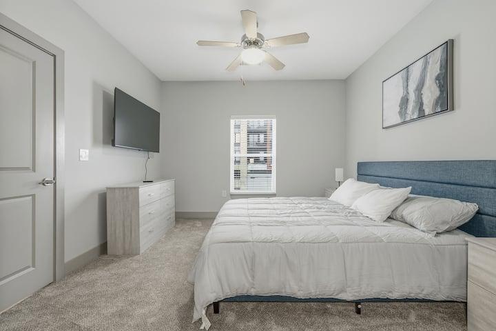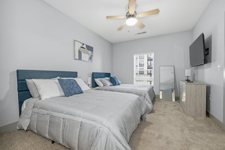 2 غرف نوم أنيقة 1 سرير كينج 2 سرير كامل حمام سباحة/صالة ألعاب رياضية/موقف سيارات