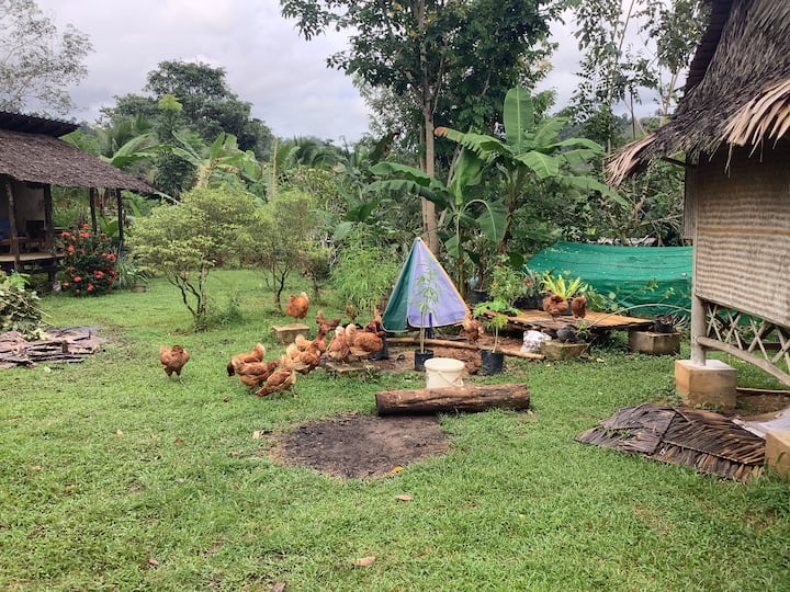 10 أكواخ من الخيزران للضيوف، ومرحاض كبير، ودش ومرافق غسيل. حدائق الخضروات التآزرية التي تنتج بالفعل الطعام لاستهلاكنا الخاص، وتوفر أشجار الفاكهة الفواكه الطازجة الموسمية.