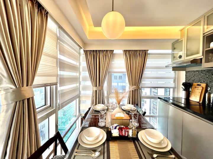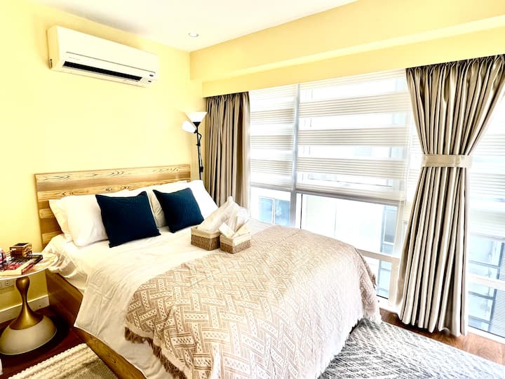 جناح ذا سكايلاين BGC بغرفتي نوم ونافذة زجاجية كاملة + موقف سيارات