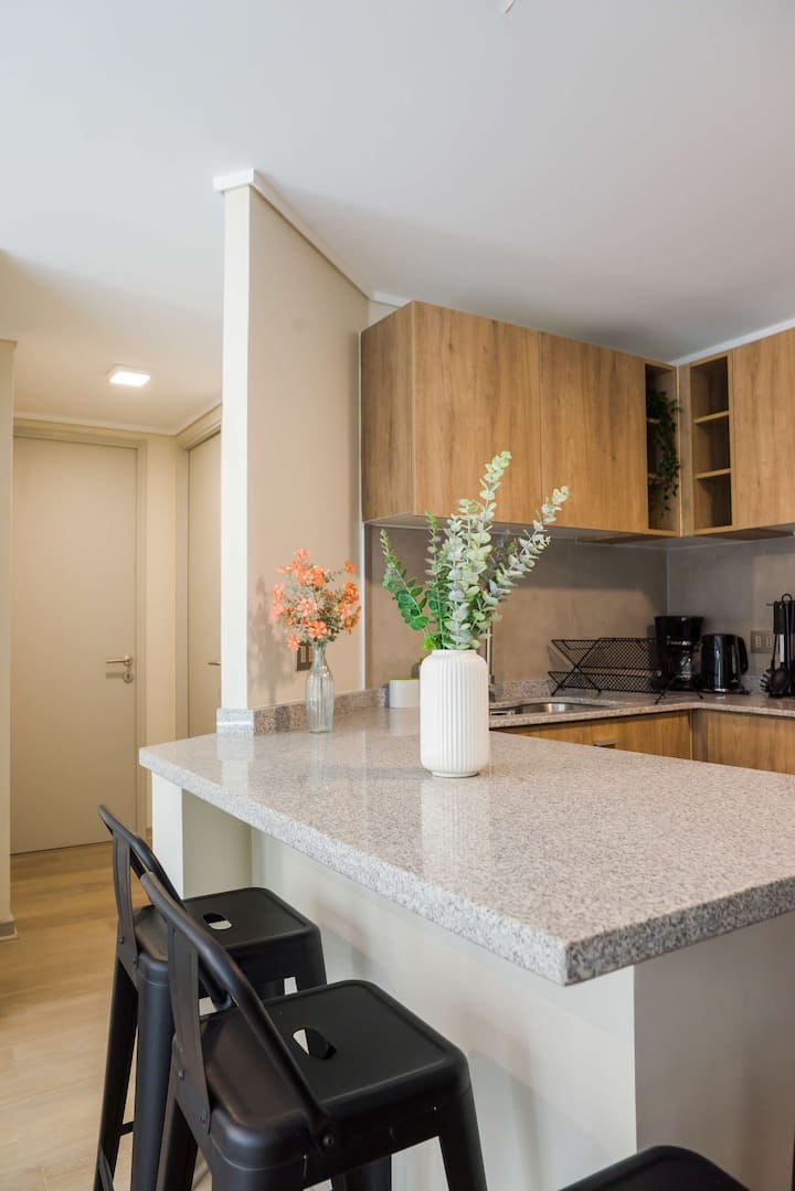شقة أنيقة بغرفتي نوم في سانتياغو مع شرفة تتسع لـ 5 ضيوف