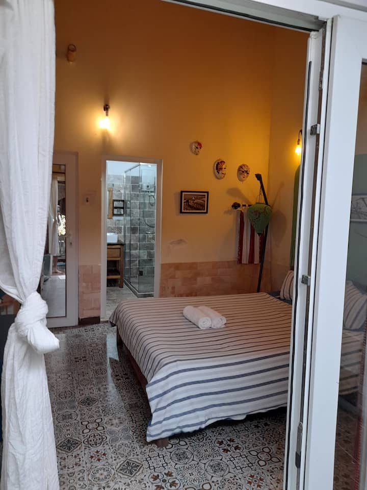 غرفة مزدوجة مع فناء وإطلالة على الحديقة