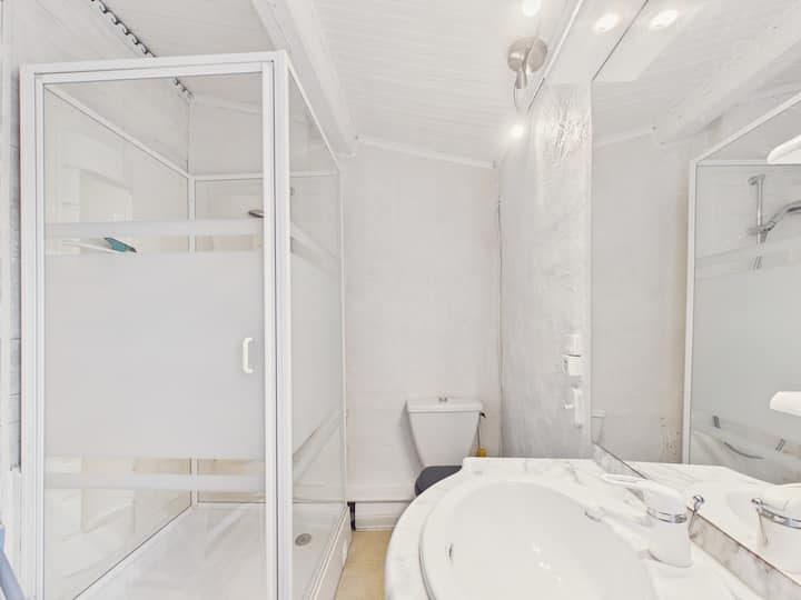 في الداخل، يحتوي المنزل على منطقة معيشة عملية. تم تأثيث غرفة المعيشة بأريكة ومدفأة زخرفية وتلفزيون، وهي مثالية للاستمتاع بلحظات الاسترخاء بعد أيام الاستكشاف الطويلة في الجزيرة. المطبخ المفتوح مجهز بالكامل: موقد حثي، ثلاجة، فريزر، فرن، غسالة أطباق، ماكينة قهوة سينسيو، محمصة خبز، غلاية، بالإضافة إلى كل ما يلزم للطهي كما لو كنت في منزلك. يوفر المنزل ليلاً منطقتين للنوم: - غرفة نوم (غير مغلقة) (في الطابق العلوي): سرير مزدوج كبير (160×200 سم) - غرفة معيشة (في الطابق الأرضي): أريكة تتحول إلى سرير مزدوج (140×190 سم). يتوفر حمام في الطابق العلوي مزود بدش ومرحاض ومجفف شعر. لا يتوفر موقف سيارات خاص، ولكن ستجد موقف سيارات مدفوع الأجر بالقرب من مكان الإقامة.ستتاح لك إمكانية تخزين ما يصل إلى 4 دراجات هوائية في فناء مكان الإقامة بأمان تام.