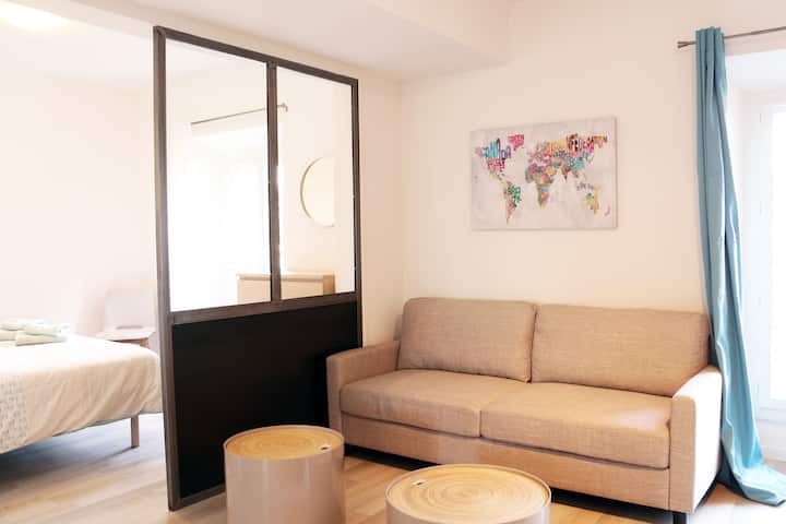 شقة رائعة مع تلفزيون/واي فاي/موقف سيارات مجاني