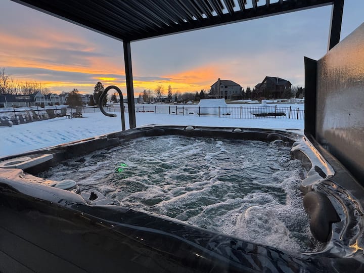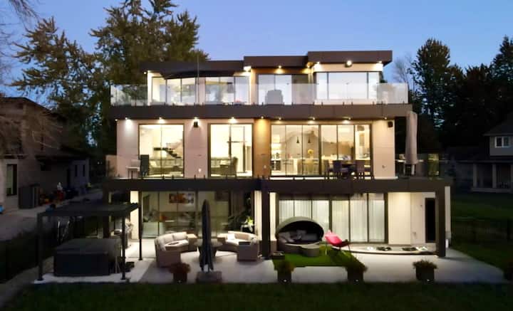 واحة حديثة على ضفاف البحيرة: منظر غروب الشمس ورصيف بحري خاص