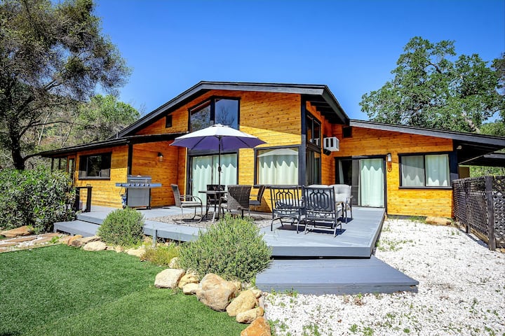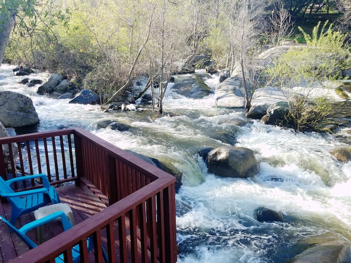 يسعدنا استضافتك في بيتنا العصري على النهر، مع سطحين على النهر. يقع على مقربة من منتزه سيكويا الوطني. يقع البيت على مساحة 7 فدانات في وسط الجبال مع إطلالات لا نهاية لها من كل زاوية من زوايا البيت. ستجد دربًا جميلًا يقودك إلى نهرنا الخلاب مع صخور لا نهاية لها!! ستجد هناك سطحين كبيرين فوق النهر ومنطقة جلوس على طول النهر. يمنحك البيت شروقًا وغروبًا مذهلاً للشمس في الفناء الكبير الإضافي. 👏