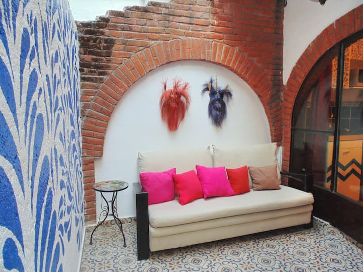 منذ وصولك إلى منزلنا، ستشعر أنك لست في مكسيكو سيتي، وهو بيت على الطراز المكسيكي مليء بالألوان والتفاصيل التي ستنقلك إلى مكان آخر، ولدينا أنواع مختلفة من الغرف بسعة 2 و 4 غرف وحتى 6 أشخاص.