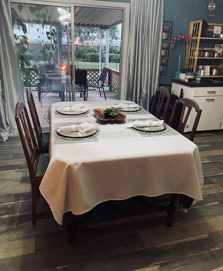 أولاً، شكرًا جزيلاً لك على التفكير في بيتي للحصول على راحة أثناء استمتاعك بجميع التجارب الرائعة التي تقدمها هذه المنطقة! لقد استمتعت بالرحلات لعدة عقود، وأنا الآن في رحلة للتعرف على الأماكن التي لم أزورها بعد. هذا يسمح لي بمشاركة بيتي معك بينما أنا في الخارج أوسع آفاقي وأصنع ذكرياتي الخاصة.