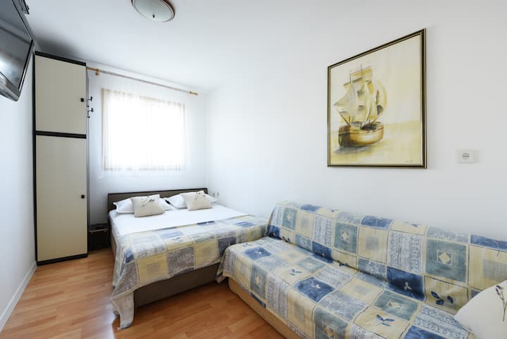1 سرير حجم وسط و1 سرير أريكة