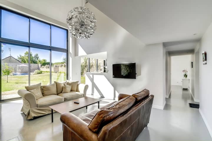 فيلا مع حمام سباحة وحديقة في أمبونفيل
