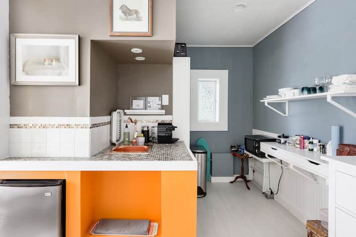 نحن نستمتع حقًا بمارين وأطفالنا وكلابنا وبصراحة ، مع العلم أن ضيوفنا الرائعين لديهم ملاذ هادئ ولطيف في الاستوديو لدينا.