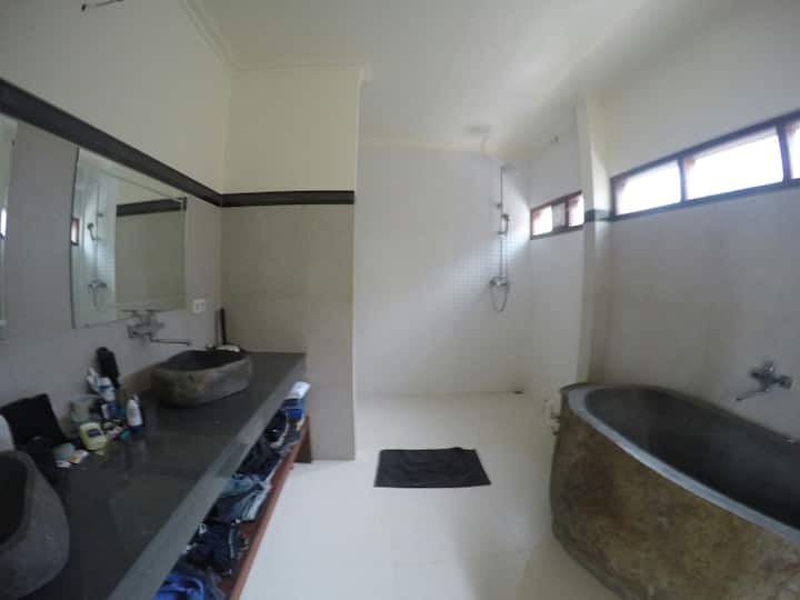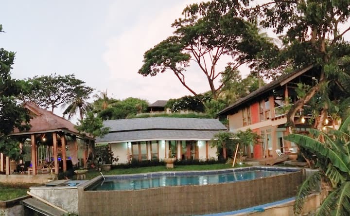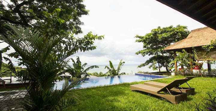 مرحبا هذا هو مومي وبول...لدينا هذه الفيلا 4 غرف نوم تواجه كل غرفة إلى حمام سباحة لا متناهي والمحيط.... وجهة نظر غروب الشمس تبحث في جبل أغونغ بالي عبر المحيط .فيلا تقع على تلة التزلج من قبل الأخضر مكان مريح جدا بعيدا عن كل الضوضاء ولكن فقط 10 MNT من Senggigi.we نود أن نشارك هذا الشعور الاستثنائي عند الاستيقاظ في الصباح وعظمة من الطيور في الأخضر المتجول من التل وإطلالة مذهلة على البحر والهواء النقي من الطبيعة