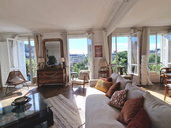 شرفات بإطلالة مفتوحة في شقة عائلية عند الطلب من 4 إلى 8 أشخاص في قلب باريس