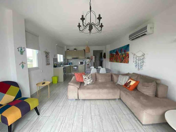 شقة بغرفتي نوم مع إمكانية استخدام حمام السباحة والمشي إلى الشاطئ