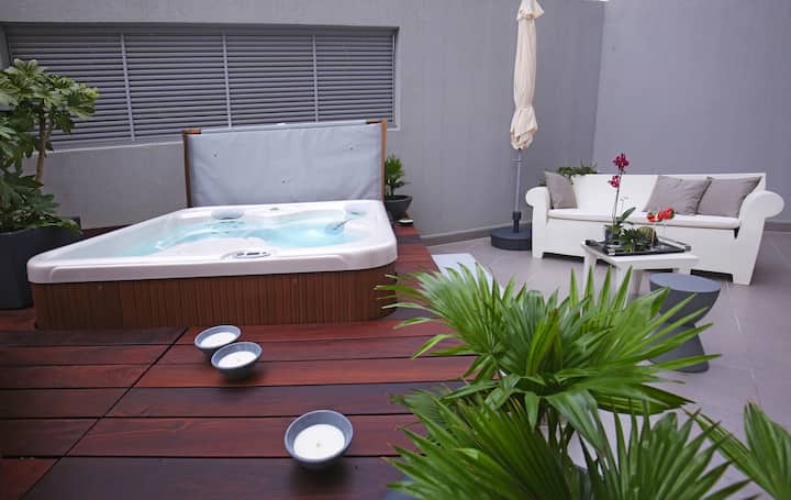 استمتع بالاسترخاء مع دُش خارجي والجاكوزي.