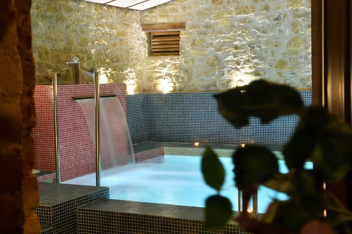 ستتمكن من الاستمتاع بمسبح مدفأ يعمل على مدار 24 ساعة في اليوم وفناء مع شواء وغرفة ألعاب للأطفال.