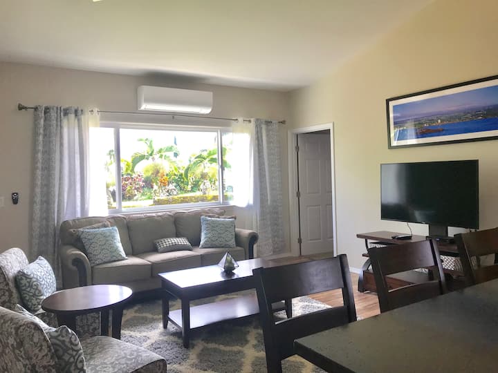 بيت هيلو باوكا. غرفة معيشة وغرفة نوم رئيسية بمكيف هواء رائع