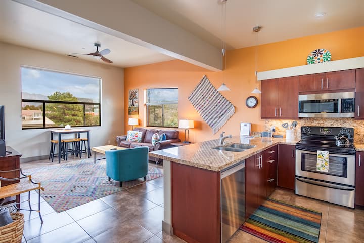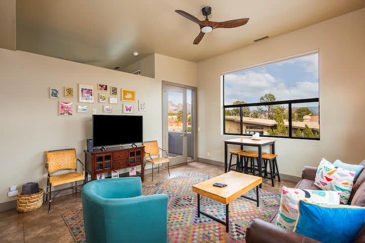 شقة علوية جيدة التهوية في سيدونا — نزهة إلى المقاهي والمتاجر والمسارات