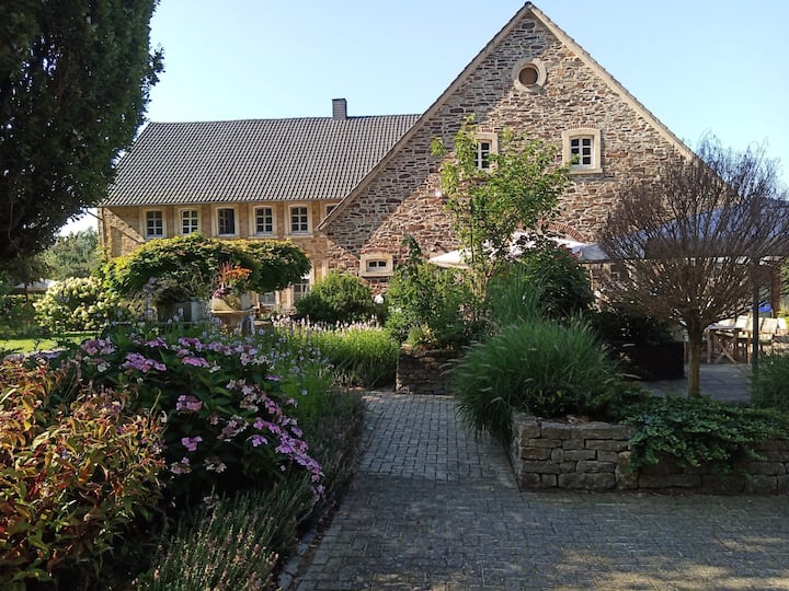 نحن نعيش في مزرعتنا. قبل عامين تخلينا عن مزرعة الألبان وكرسنا أنفسنا الآن لحديقتنا الرائعة، حيث يمكن لضيوفنا العثور على العديد من مناطق الجلوس الجميلة والاستمتاع بسلام وجمال المكان.
