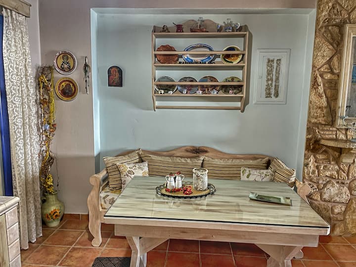 - بيوت عطلات للإيجار مخصصة للعطلات مع أماكن للجلوس في الهواء الطلق في اليونان