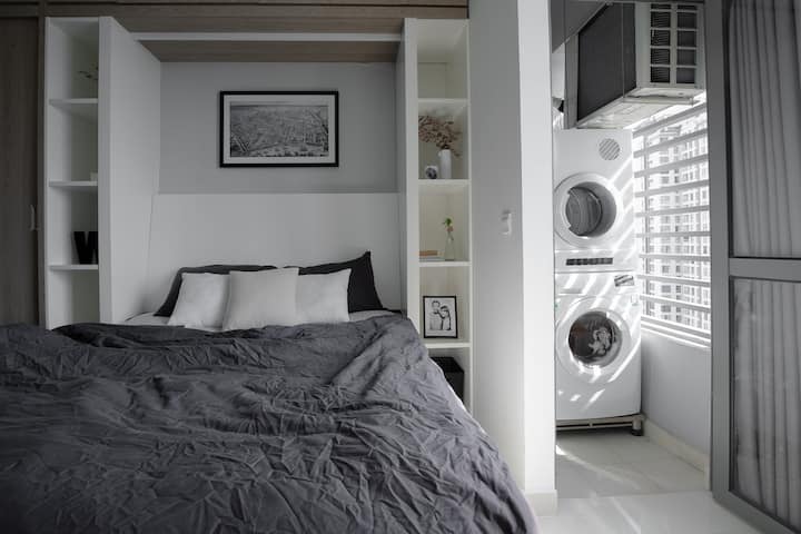 استوديو حديث مريح مع حمام سباحة واسع