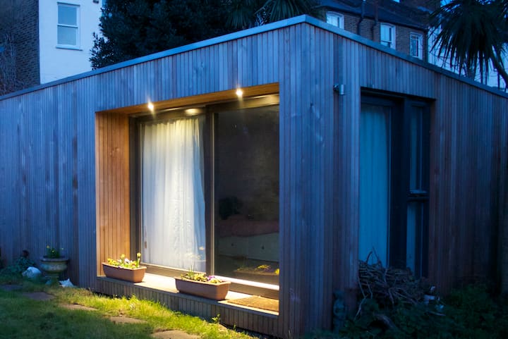 كوخ خشبي قائم بذاته، حديقة غرينتش المشمسة