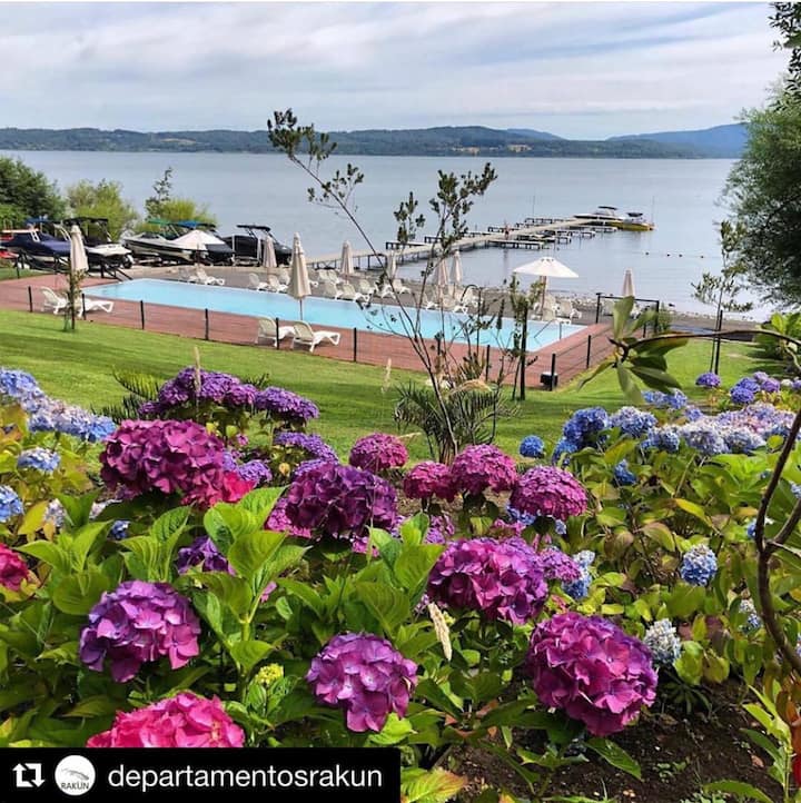 يقع هذا البيت على Lago Villarrica مباشرةً.