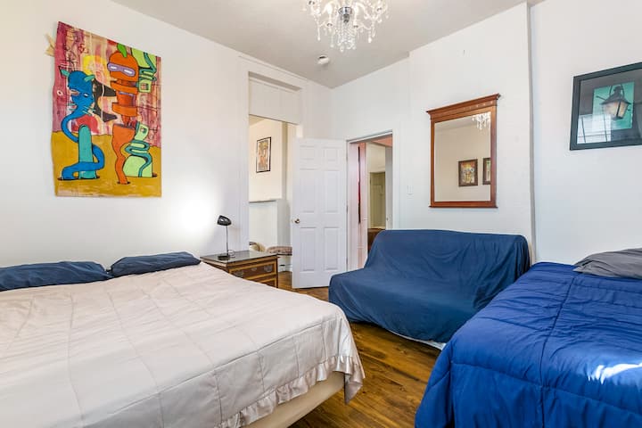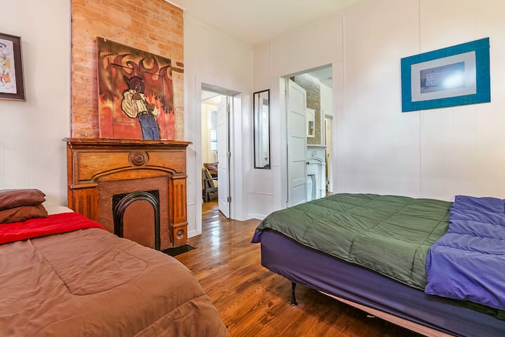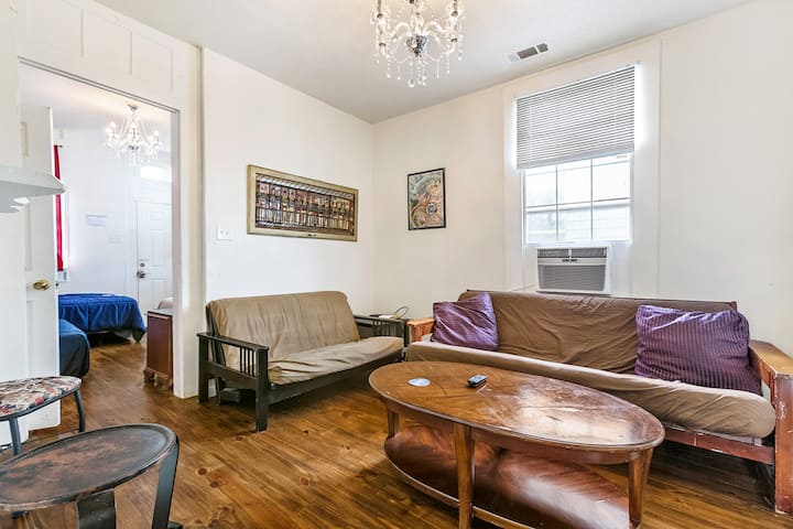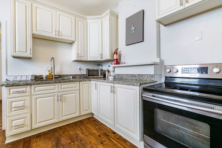 يقع هذا المنزل المكون من 3 غرف نوم وحمامين كاملين على مسافة قريبة سيرًا على الأقدام من الحي الفرنسي، على بعد مبنى واحد فقط من شارع الفرنسيين، وعلى بعد مبنى واحد فقط من سانت كلود، وعلى بعد بنايتين قصيرتين من جميع الحانات والمطاعم في سانت برنارد! مسافة قصيرة جدًا سيرًا على الأقدام إلى العديد من النوادي الموسيقية والحانات والمطاعم والمهرجانات. المشي إلى كل العمل! منطقة فناء خارجية خلفية صغيرة جذابة مع طاولة وكراسي لمجموعتك للاستمتاع بها!