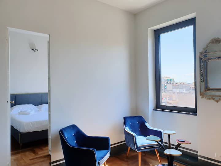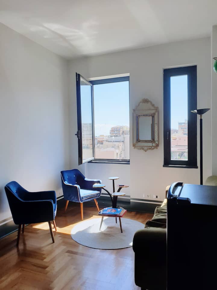مرحبًا، أنا أندريا. أعمل في مجال السينما، وأعمل مع شريكي المهندس المعماري في مجال التصميم الداخلي. تعكس الشقة جمالياتنا حيث يتم إثراء المعاصرة بقطع كلاسيكية من عصور وأنماط مختلفة.