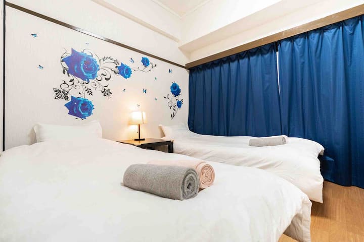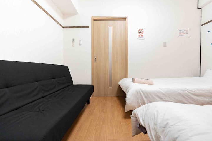 201 نيهونباشي سوق كورو مون، غرفة نوم واحدة وغرفة معيشة واحدة، إقامة قانونية، تخزين مجاني للأمتعة، 6 دقائق سيرًا على الأقدام إلى دوتونبوري، 9 دقائق إلى شينسايباشي، وسائل النقل سهلة
