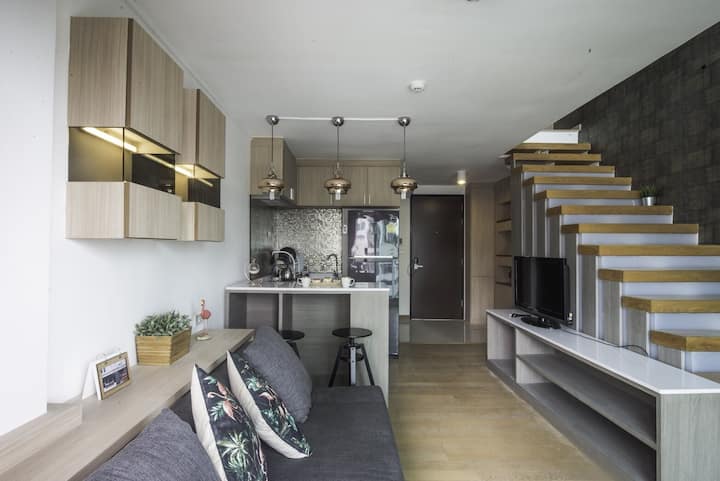 دوبلكس قلب بانكوك شقة راقية ، قيمة جيدة مقابل المال ، واي فاي مجاني عالي السرعة ، دقيقتان سيرًا على الأقدام إلى BTS