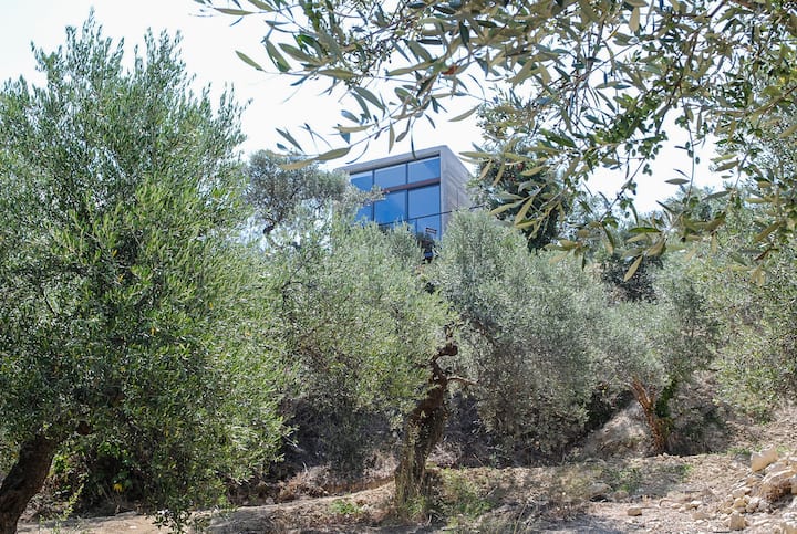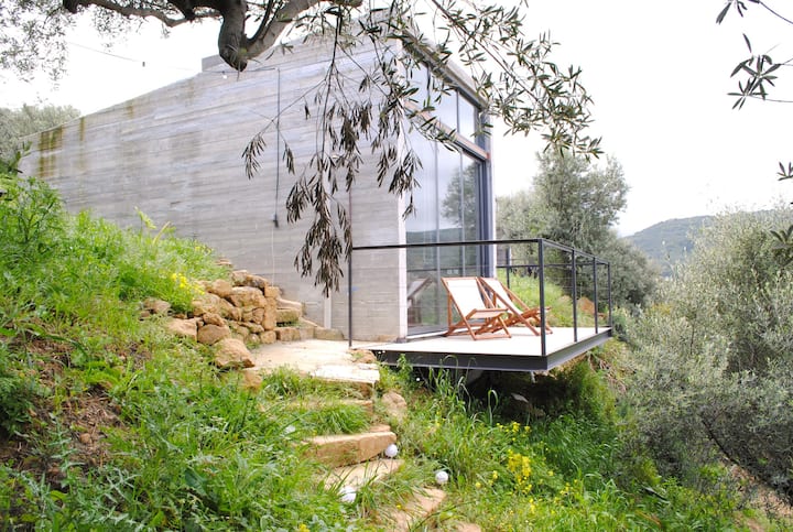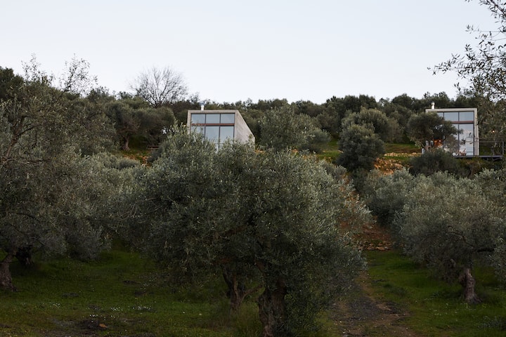 أمين الفن السويدي/اليوناني الذي يدير كبائننا الخرسانية المعاصرة (أنتونيس وأنا) في جزيرة كريت