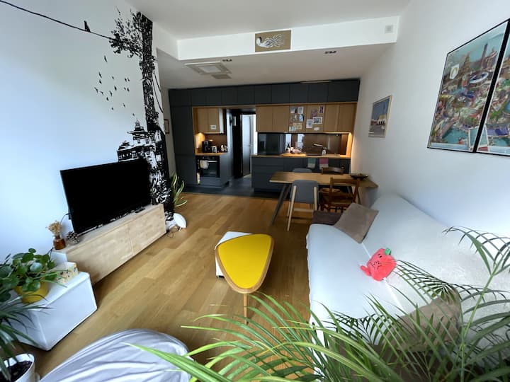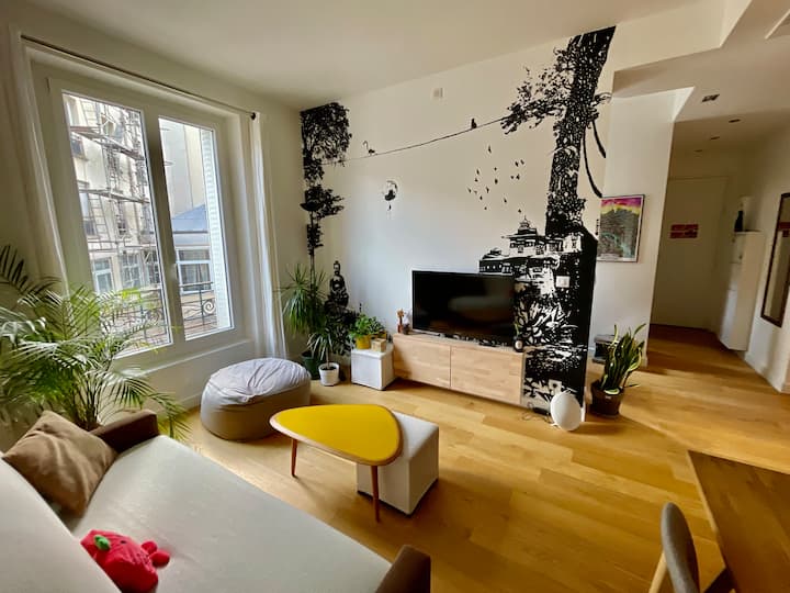 شقة علوية لفن الشارع | مكيف هواء | بالقرب من ماريه والباستيل
