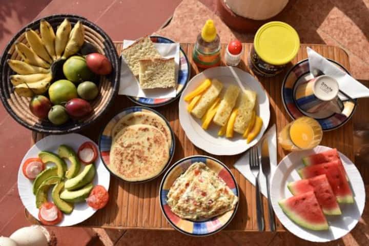الاستيقاظ على تناول الفطور والقهوة