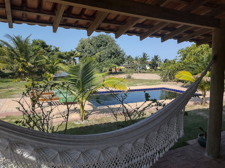بيت وحمام سباحة وبحيرة على شاطئ البحر