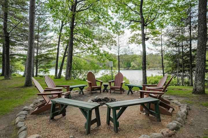 4 غرف نوم منعزلة على ضفة بحيرة مع رصيف ومدفأة