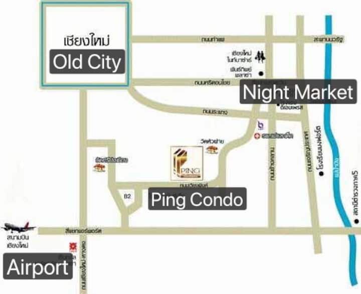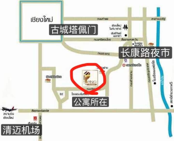 شقة بينغ في شيانغ ماي، شقة ذات قيمة جيدة، قريبة من السوق الليلي، المدينة القديمة، طريق تشانغ كانغ، بوابة تايبيه، صالة ألعاب رياضية مجانية، بما في ذلك رسوم المياه والكهرباء