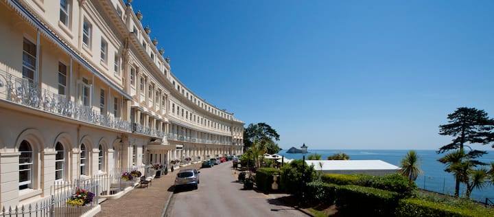 تقع شقق أوزبورن في هيسكيث كريسنت، وهو مبنى مدرج شهير، يطل على خليج ميدفوت المذهل على الريفيرا الإنجليزية.